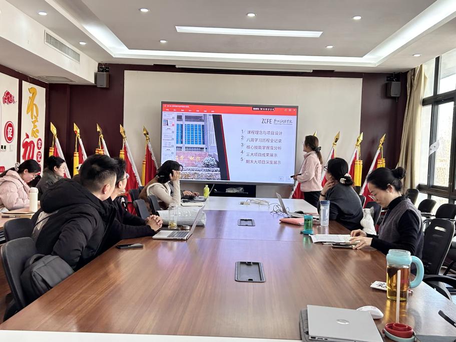 按照会议安排,各课程负责人依次登台,以PPT形式展开6-8分钟的专题汇报。汇报内容严格围绕课程设计、教学进度详表、实训项目规划、实训经费预算、考核方案优化、“一课一展”落地路径六大核心模块,全面呈现课程建设思路与实施计划,做到重点突出、逻辑清晰、内容详实。