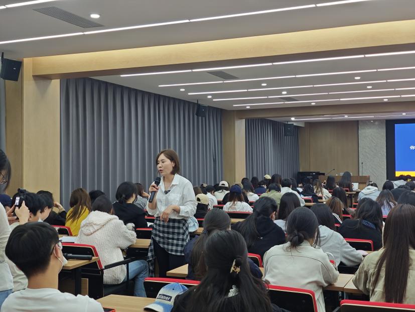 讲座现场干货满满,张玉韩老师以趣味互动开篇,结合自身运营的自媒体账号,分享实战心得与 AI 视频生成技巧,围绕脚本撰写、短视频制作等四大核心模块,重点拆解短视频策划、市场分析、预热推广等实操要点。她深入解析爆款短视频逻辑,结合校园宣传场景讲解创作技巧,强调 “脚本是灵魂,拍摄是基础,剪辑是节奏,AI是翅膀” 的核心理念,为师生搭建起理论与实践的桥梁。互动环节中,针对视频脚本创作等热点问题,张老师耐心答疑解惑,现场氛围热烈。讲座最后,刘素晶老师总结寄语,希望同学们将所学转化为实践,用镜头讲好艺设故事。